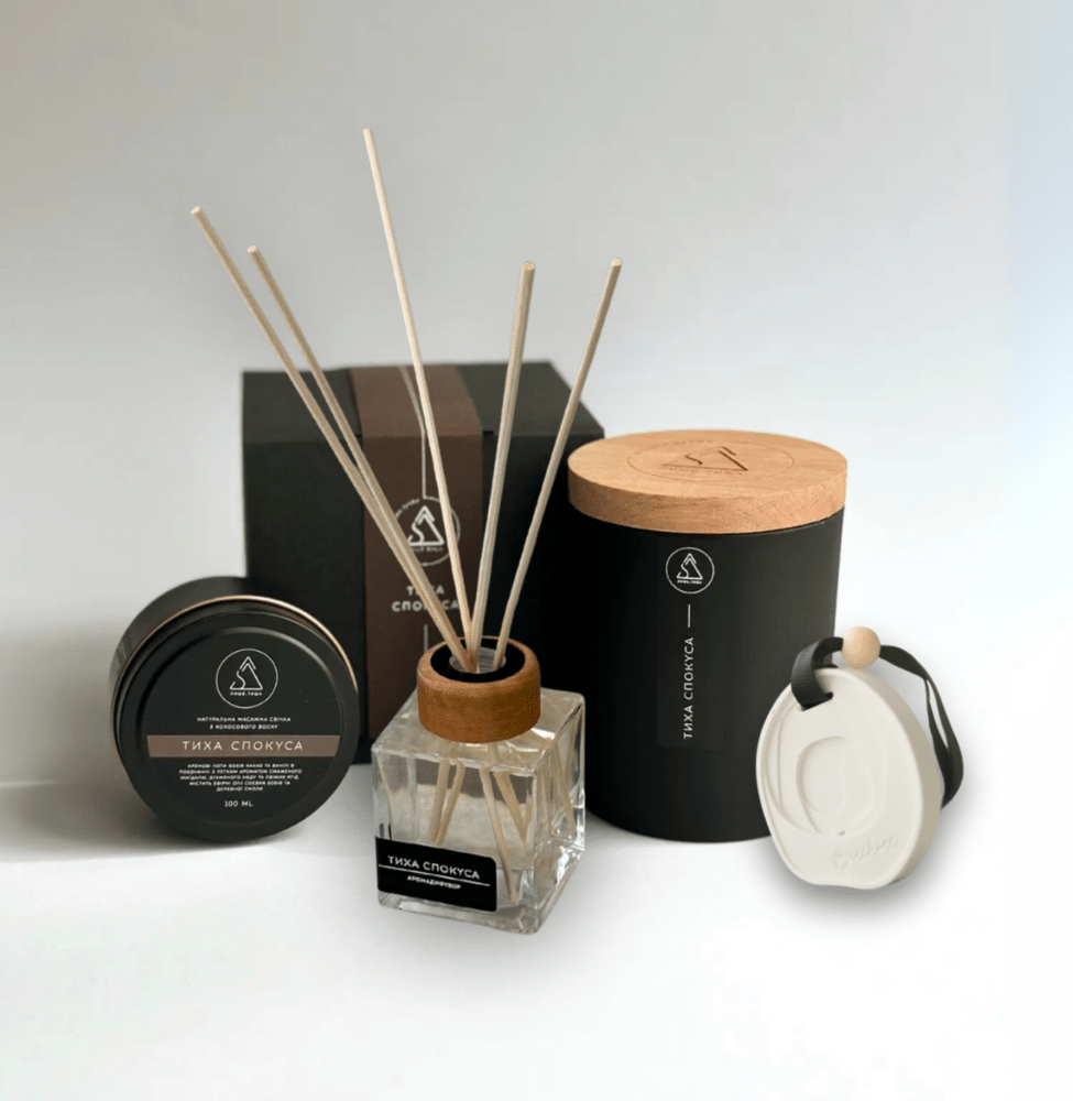 Відкрий світ чуттєвої турботи з преміальним набором “Тиха спокуса” (XL). У набір входить 4 продукти в єдиному вишуканому ароматі – ароматична та масажна свічки, аромадифузор, аромасаше. Вони одночасно дбають про твоє ментальне здоров’я, комфорт твого простору та турбуються про стан твоєї шкіри.